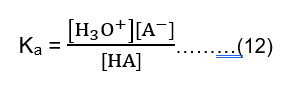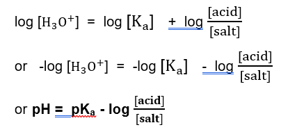 As the salt MA is completely dissociated, [A–] = [MA] = [Salt] and [HA] = [Acid]. So, equation (12) can be written as