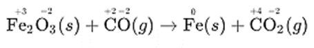 Here, chlorine is oxidized to chlorate (ClO3-) and reduced to chloride (Cl-) simultaneously.The reverse of disproportionation reaction is comproportionation reaction where two reactants having the same element but with different oxidation numbers, form a compound having an intermediate oxidation number.8.6 Balancing (the equation) of Redox reactionsThe two methods for balancing the equation of redox reactions are as follows.i. Oxidation number methodii. Ion-electron method / Half reaction methodThere’s no real difference between the oxidation number method and the half-reaction method. They are just different ways of keeping track of the electrons transferred during the reaction. Both are based on the same principle: In oxidation - reduction reactions the total number of electrons donated by the reducing agent is equal to the total number of electrons gained by the oxidising agent. The first method is based on the change in the oxidation number of reductant and the oxidant and the other method is based on splitting the redox reaction into two half reactions - one involving oxidation and the other involving reduction. Sometimes one method is more convenient than the other method.i. Oxidation number methodThe reaction of iron(III) oxide (Fe2O3) with carbon monoxide (CO) that takes place in a blast furnace during the processing of iron ore into metallic iron will be used as an example to show the steps followed in this method.Fe2O3 (s) + CO (g) → Fe (s) + CO2 (g)Step I: Assign oxidation numbers to the atoms of all the elements in the equation and write above those atoms.