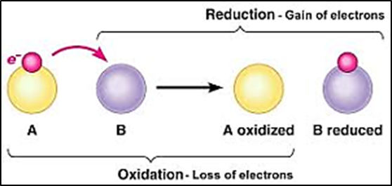 aContents:Importance of Redox reactions Classical concept of Redox reactionsRedox reactions in terms of Electron transferOxidation NumberRedox reactions in terms of oxidation numbersFractional Oxidation NumberTypes of Redox ReactionsBalancing (the equation) of Redox reactionsRedox reactions as the basis of TitrationCompetitive electron transfer reactionsRedox reactions and Electrode processesElectrochemical series8.1 Importance of Redox reactionsTransformation of matter from one type into another occurs through various types of chemical reactions and a Redox reaction is one of these types of chemical reactions. The word ‘Redox’ is formed by combination of two words; Reduction and Oxidation. Such a reaction in which reduction and oxidation occur simultaneously is called a Redox reaction. When an apple is cut, it turns brown after sometimes because of a chemical reaction called oxidation and all oxidation reactions are accompanied by reduction reactions and vice versa. Redox reactions are the basis of electrochemistry. They have various laboratory and industrial applications. The charging and discharging of an electric battery is a redox reaction. Respiration, on which our life depends, is another example of a redox reaction. In this case, the glucose molecules are oxidized while oxygen molecules are reduced to form water. On an industrial level, redox reactions are used for extracting metals from their ores as metals occur in nature as ores in their oxidized forms and to extract them, we need reducing agents.8.2 Classical concept of Redox reactionsOxidation reactions may involve any of the following: i) Addition of oxygen C + O2 → CO2 (oxygen is added to carbon)ii) Addition of electronegative element Fe + S → FeS (sulfur is added to iron)iii) Removal of hydrogen H2S + Br2 → 2 HBr + S (hydrogen is removed from H2S)iv) Removal of electropositive elements 2 KI + H2O2 → I2 + 2KOH (potassium is removed from KI)Oxidising agent is a substance which oxidizes other substances. In these examples; O2, S, Br2, and H2O2 are oxidising agents.Reduction reactions may involve any of the following: v) Addition of hydrogen N2 + 3H2 → 2NH3 (H is added to nitrogen)vi) Addition of electropositive element SnCl2 + 2HgCl2 → SnCl4 + Hg2Cl2 (addition of mercury to HgCl2)vii) Removal of oxygen ZnO + C → Zn + CO (oxygen is removed from ZnO)viii) Removal of electronegative element 2FeCl3 + H2 → 2FeCl2 + 2HCl (Cl is removed from FeCl3)Reducing agent is a substance which reduces other substances. In these examples H2 (v and viii), SnCl2 and C are Reducing agents.A substance, which undergoes oxidation, acts as a reducing agent while a substance, which undergoes reduction, acts as an oxidising agent. In any of a chemical reaction if one of the reactants is oxidized, other is surely reduced, i.e. oxidation and reduction always take place simultaneously, hence, the word ‘redox’ was coined for this class of chemical reactions. For example; in (vi), HgCl2 is reduced to Hg2Cl2 whereas SnCl2 is oxidised to SnCl4.8.3 Redox reactions in terms of Electron transferThis is the most widely applicable definition of oxidation and reduction. Oxidation is the loss of electrons and reduction is the gain of electrons. A redox (oxidation-reduction) reaction is a type of chemical reaction that involves a transfer of electrons between two species. As electrons are neither created nor destroyed in a chemical reaction, oxidation and reduction always occur in pairs, it cannot occur individually. Redox reactions are comprised of two parts, a reduction half reaction and an oxidation half reaction, that always occur together. The reduced half gains electrons and the oxidation number decreases, while the oxidized half loses electrons and the oxidation number increases. As there is no net change in the number of electrons in a redox reaction, the electrons given off in the oxidation half reaction are taken up by another species in the reduction half reaction.The two species that exchange electrons in a redox reaction are defined as The species (ion, atom or molecule) that accepts electrons is called the oxidizing agent - by accepting electrons it oxidizes other species. The species (ion, atom or molecule) that donates electrons is called the reducing agent - by giving electrons it reduces the other species.Hence, what is oxidized is the reducing agent and what is reduced is the oxidizing agent. A pictorial representation is shown below.