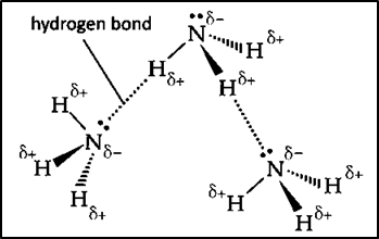 The combining atom which donates the pair of electron is called a donor atom and the other atom an acceptor atom. This bond is shown by an arrow starting from the donor atom pointing towards the acceptor atom. In coordination compounds, the donor atom is called ligand and the acceptor atom as central-metal atom/ion.4.5 Hydrogen bondingThe force of attraction existing between H atom which is covalently bonded to a highly electronegative and small atom (F, O and N mostly) and similar atom of another covalent molecule is called H-bonding. Hydrogen bond is possible mostly in polar covalent molecules where partial charge separation is there. For example, in ammonia (NH3), hydrogen bond is present between two NH3 molecules because of electrostatic attraction between partially positively charged H atom and the lone pair of electrons of N atom of another NH3 molecule.