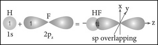 When two atomic orbitals overlap sideways, the resultant covalent bond is called a pi (π) bond. σ bond is stronger than π bond as the extent of overlap in σ is more compared to π. One difference between single and multiple bonds (double or triple bonds) is that single bonds only have a sigma bond, whereas multiple bonds have both sigma and pi bonds. As an example, in HF molecule, a half-filled 1s orbital of hydrogen linearly overlaps with a half filled 2pz orbital of fluorine, an σ-covalent bond is formed between hydrogen and fluorine.