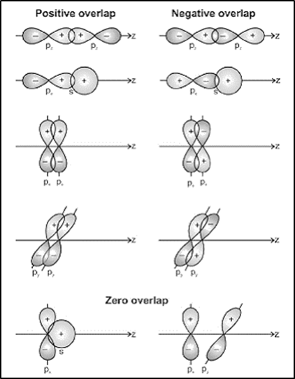 When orbitals of two atoms come close to form bond, their overlap may be positive, negative or zero depending upon the sign (phase) and direction of orientation of the orbitals.