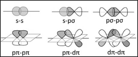 Positive overlapping of Atomic orbitals – When the phases of two interacting orbitals are the same, then the overlap is positive and in this case, bond is formed. Negative overlapping of Atomic orbitals – When the phases of two interacting atomic orbitals are opposite, then the overlap is negative and in this case, no bond is formed.Zero overlapping of Atomic orbitals – When the orientation of two interacting atomic orbital is such that there is no overlapping of the orbitals, that is known as zero overlapping.4.8.2 Sigma and Pi bondsBased on the nature of overlap, the covalent bonding can be classified as sigma (σ) and pi (π) bonds. When two atomic orbitals overlap linearly along the axis, the resultant bond is called a sigma (σ) bond (also called ’head-on overlap’ or ’axial overlap’). Overlap involving an s orbital (s-s and s-p overlaps) will always result in a σ bond as the s orbital is spherical. Overlap between two p orbitals along the molecular axis will also result in σ bond formation.