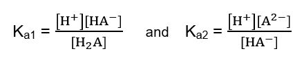 Here, Ka1 and Ka2 are the first and the second ionisation constants of the acid H2A. Similarly, for a tribasic acid there are three ionization constants: Ka1, Ka2, and Ka3. The values of the ionization constants for some common polyprotic acids are shown in Table. It can be seen that higher order ionization constants (Ka2, Ka3) are smaller than the lower order ionization constant (Ka1) of a polyprotic acid. The reason for this is that it is more difficult to remove a positively charged proton from a negative ion due to electrostatic forces.