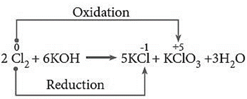 Here, hydrogen is replaced by Zn metal. It can also be said that H+ ion is reduced by Zn metal and itself is oxidized by H+.Disproportionation reactionIn some redox reactions, the same compound can undergo both oxidation and reduction simultaneously. In such reactions, the oxidation state of an element is both increased and decreased. These reactions are called disproportionation or auto-redox reactions.
