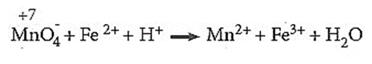 Step II: Separate the equation into half-reactions: oxidation and reduction.Oxidation: Fe2+ → Fe3+ + 1e- -------------------- (1)Reduction: MnO4− + 5e- → Mn2+ -------------------- (2)Step III: Balance the atoms other than O and H in each half reaction individually. Here the oxidation and reduction half reactions are already balanced with respect to Fe and Mn atoms. Step IV: Balance the O and H atoms. For equation (2), 4 ’O’ atoms are on the reactant side, therefore add 4H2O on the product side and then to balance ’H’ - add, 8H+ in the reactant side.MnO4- + 5e- + 8H+ → Mn2+ + 4H2O ---------------- (3)Check whether charges are same on both sides of the two equations. Here, for equations (1) and (2), charges are same on both sides.Step IV: Equate both half reactions in such a way that the number of electrons lost is equal to the number of electrons gained and that can be done by multiplying equation (1) by 5 and equation (3) by 1. Addition of two half reactions (equations 4 and 5) gives the balanced equation represented by equation (6).