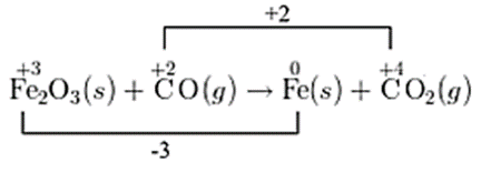 The carbon atom’s oxidation number increases by 2, while the iron atom’s oxidation number decreases by 3. As written, the number of electrons lost does not equal the number of electrons gained but in a balanced redox equation, these must be equal.Step III: Use coefficients to make the total increase in oxidation number equal to the total decrease in oxidation number. In this case, the least common multiple of 2 and 3 is 6. So the oxidation-number increase should be multiplied by 3, while the oxidation-number decrease should be multiplied by 2.