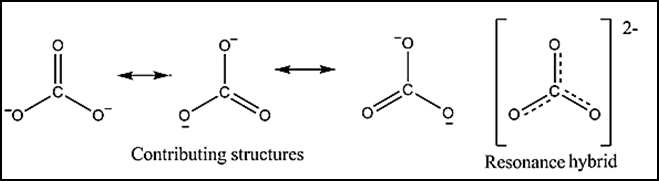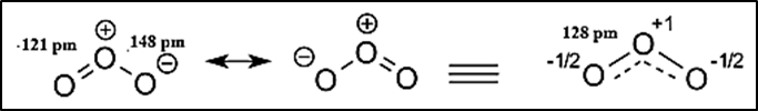 In both structures (left hand side images), there is an O–O single bond and an O=O double bond having bond lengths 148 pm and 121 pm respectively but experimentally determined oxygen-oxygen bond lengths in the O3 molecule are same (128 pm). Thus the oxygen-oxygen bonds in the O3 molecule are intermediate between a double and a single bond.It is found that the energy of the resonance hybrid is lower than that of all possible canonical structures. The difference in energy between most stable canonical structure and resonance hybrid is called resonance energy. These structures can be either equivalent or non-equivalent. Resonance forms that are equivalent have no difference in stability and contribute equally. Below is the example of equivalent resonance structures of carbonate anion (CO32-).