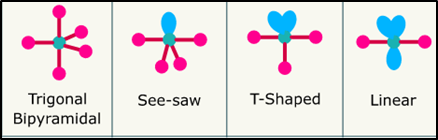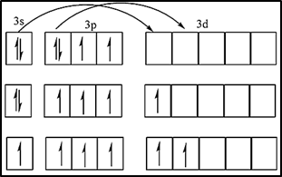 4.2.9 Variable covalencyAn atom’s covalency indicates how many electrons the atom can use during covalent bond formation. Variable covalency refers to the tendency of certain atoms to show different covalencies as a result of excitation of the atoms. In the atoms exhibiting variable covalency, the number of unpaired electrons increases after excitation of the atom causing it to have variable covalency. For example, sulfur has valence shell electronic configuration 3s23p4. Number of unpaired electrons may vary depending on how many electrons can be transferred from 3s or 3p to 3d orbital after excitation. Some examples of variable covalency are shown below.