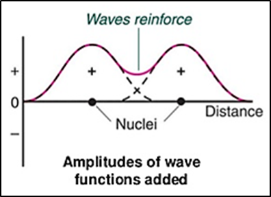 Let us consider two AO represented by the wave function ψA and ψB with comparable energy, combines by LCAO to form two MO: One is BMO (ψbonding) and the other is ABMO (ψantibonding). ψbonding = (ψA + ψB) ψantibonding = (ψA – ψB)