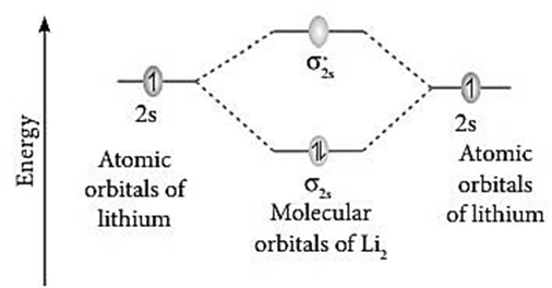 E.C. of Li2 molecule σ21s σ* 21sσ22s or KK σ22s where KK represents the closed K shell structure σ21s σ* 21s