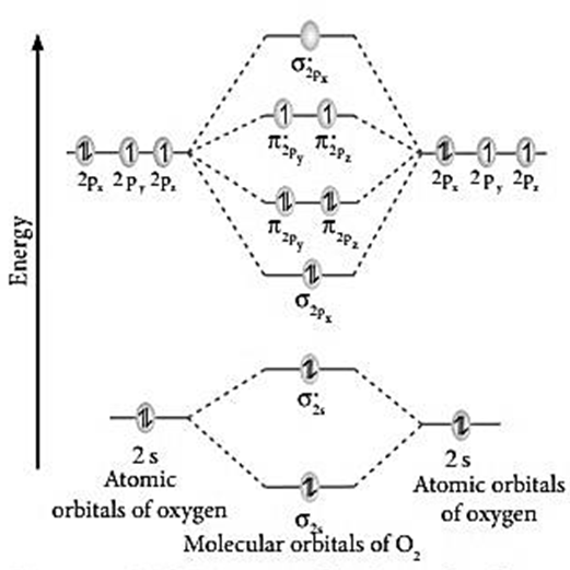 E.C. of O2 molecule: KK σ*22s σ22px π22py π22pz π* 12py π *12pz