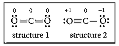 4.2.7 Formal ChargeSometimes, the Lewis structure for many molecules drawn using the method mentioned above, gives more than one acceptable structures. To find an answer that which one of these structures represents the best distribution of electrons in the molecule, we need to know the formal charge of each atom in the Lewis structure. For example, following the above steps for carbon dioxide molecule (CO2) leads to following two structures of CO2.