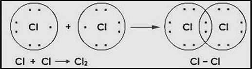4.2.3 Octet ruleKössel and Lewis developed an important theory of chemical combination between atoms known as electronic theory of chemical bonding. This theory leads to the octet rule, which states that “the atoms transfer or share electrons so that all atoms involved in chemical bonding obtain 8 electrons in their outer shell (valence shell)”.4.2.4 Covalent bondLangmuir refined the Lewis postulations by altering the idea of the stationary cubical arrangement of the octet, with the term covalent bond. Covalent bond is formed when there is mutual sharing of one or more pairs of electrons between two combining atoms.Let us take the example of diatomic molecule chlorine (Cl2). The Cl atom with electronic configuration, [Ne]3s23p5, is one electron short of the argon (Ar) configuration. The Cl2 molecule is formed by the sharing of a pair of electrons between the two Cl atoms, each Cl atom contributing one electron to the shared pair. The valence electrons are shown with dots (Electron Dot Symbols) and such structures are referred to as Lewis dot structures. When combining atoms share two and three electron pairs, the covalent bond between them is called a double bond and triple bond respectively. These are multiple bonds.