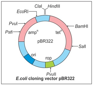 (1) Enzyme polymerase is not included(2) The mammalian DNA is shown double stranded(3) Only one fragment is inserted(4) Two different restriction enzymes are used119. Because of ……………production of a human protein in bacteria by genetic engineering is possible.(1) Bacterial cell can carry out the RNA splicing reactions(2) The mechanism of gene regulation is identical in humans and bacteria(3) The human chromosome can replicate in bacterial cell(4) The genetic code is universal120. If a recombinant DNA bearing gene for ampicillin resistance is transferred into E.Coli cells and the host cells are spread on agar plates containing ampicillin, then :-(1) both transformed and untransformed recipient cells will die(2) both transformed and untrasformed recipient cell will be grow(3) tranformed recipient cells will grow and untransformed recipient cells will die(4) transformed recipient cells will die and untransformed recipient cells will grow121. What is special in below sample of a portion of DNA strand giving the base sequence on the opposite strands. 5’______GAATTC_______3’3’______CTTAAG_______5’(1) Replication completed(2) Delection mutation(3) Start codon at the 5’ end(4) Palindromic sequence of base pairs122. In restriction endonuclease EcoRI "co" part stands for ?(1) Colon (2) Coelom(3) Coenzyme (4) Coli123. Agarose which is extracted from sea weeds is used in……..(1) Spectrophotometry (2) Tissue Culture(3) PCR (4) Gel electrophoresis124. Maximum number of existing transgenic animals is of :-(1) Fish (2) Mice(3) Cow (4) Pig125. In the development of plants resistant to…………… the process of RNA interference has been used.(1) Nematodes (2) Fungi(3) Viruses (4) Insects126. Find out themistakes in two of the statements .(A) The first transgenic buffalo, Rosie produced milk which was human alpha-lactalbumin enriched.(B) Restriction enzymes are used in isolation of DNA from other macro molecules.(C) Downstream processing is one of the steps of R-DNA technology.(D) Disarmed pathogen vectors are also used in transfer of R-DNA into the host.Which are the two statements having mistakes ?(1) Statements (A) and (B)(2) Statements (B) and (C)(3) Statements (C) and (D)(4) Statements (A) and (C)127. mRNA silencing has been used in producing transgenic plants resistant to……….(1) Bacterial blights (2) Bollworms(3) Nematodes (4) White rusts128. Bacillus thuringiensis forms insecticidal protein which…..(1) does not kill the carrier bacterium which is itself resistant to this toxin(2) binds with epithelial cells of midgut of the insect pest ultimately killing it(3) is coded by several genes including the gene cry(4) is activated by acid pH of the foregut of the insect pest129. ………………. techniques made it possible to genetically engineer living organisms?(1) Hybridization(2) Recombinant DNA techniques(3) X-ray diffraction(4) Heavier isotope labelling130. DNA polymerase used in PCR …….(1) It is isolated from a virus(2) It remains active at high temperature(3) It is used to ligate introduced DNA in recipient cells(4) It serves as a selectable marker131. Gene gun which is used for transformation, are made up of micro-particles coated with DNA to be bombarded with:-(1) Silicon or Platinum (2) Gold or Tungsten(3) Silver or platinum (4) Platinum or zinc132. The figure below is the diagrammatic representation of the E.Coli vector pBR 322. Which one of the given options correctly identifies its certain component(s)?