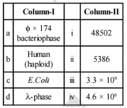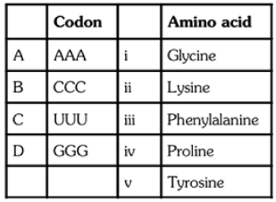 (1) All are dissimilar (2) All are similar (3) A and D are similar (4) A and B are similar233. As the codon, which is made by four N2 bases similary protein is made up by how many amino acids?(1) 20 (2) 10 (3) 11 (4) 25234. Match column-I to column-II :-