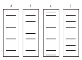 Choose correct one :-(1) a-DNA, b-H1-histone, c-histone octamer, d-core of histone(2) a-core of histone, b-DNA, c-H1 histone, d-histone octamer(3) a-Histone octamer, b-core of histone, c-DNA, d-H1 histone(4) a-H1 histone, b-histone octamer, c-core of histone, d-DNA230. Below digram represent the DNA finger printing Which is true about diagram ?
